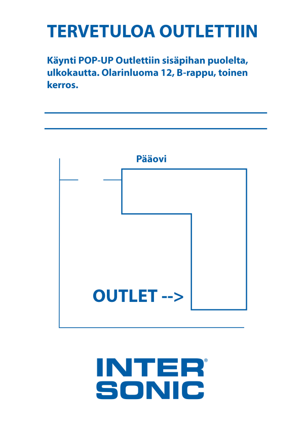 Intersonicin POP UP -outlet avaa huomenna ovensa Olarinluomassa! Myynnissä on outlet-hinnoiteltuja tuotteita useilta valmistajilta, kuten Shure, Biamp, RCF, DPA, Renkus-Heinz, Roland, Dedolight, Luminex ja Vivitek. Valikoima vaihtelee ja päivittyy jatkuvasti tilanteen ja saatavuuden mukaan.