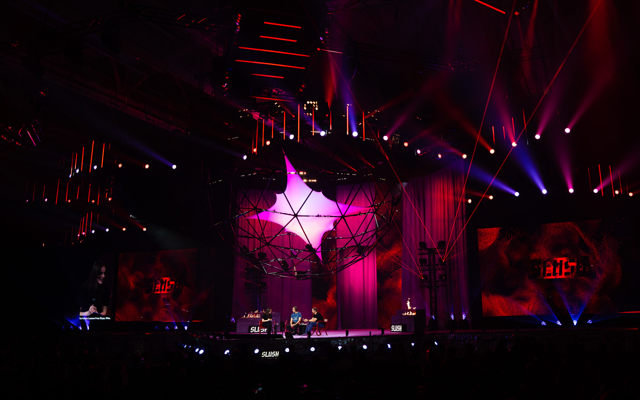 Slush tunnetaan paitsi sisällöstään myös näyttävästä toteutuksestaan. Se on yksi Suomen suurimmista vuosittain järjestettävistä yritystapahtumista. Tänäkin vuonna tapahtuman visuaalisesta ilmeestä ja kokonaistuotannosta vastasi Sun Effects, joka näin ollen koordinoi myös neljän lavan kokonaisuuden ja toi yhteen alan johtavat rental-yritykset. Tämän vuoden Slushissa käytössä olleet Barco Encore3 -videoprosessorit ja Pixera-mediaserverit ovat molemmat ratkaisuja, joita Suomessa edustaa Intersonic Oy.